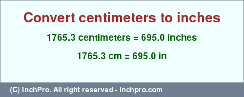 | 1765.3 (cm) | = 695.031496063 (in) | 1765.3 centimeters = 695.031496063 inches |