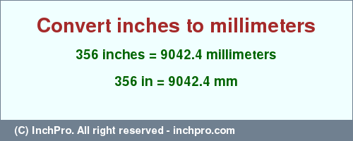 356 inches to mm = 9042.4 mm