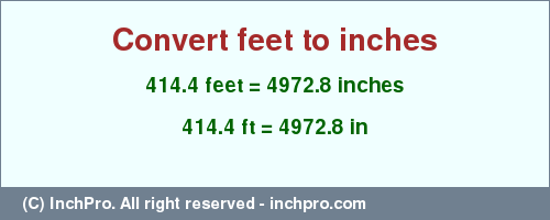 | 414.4 (ft) | = 4973.76 (in) | 414.4 feet = 4973.76 inches |