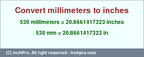 530 millimeters to inches = 20.8661417323″ (in)