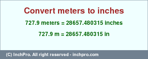 | 727.9 (m) | = 28660.6299213 (in) | 727.9 meters = 28660.6299213 inches |