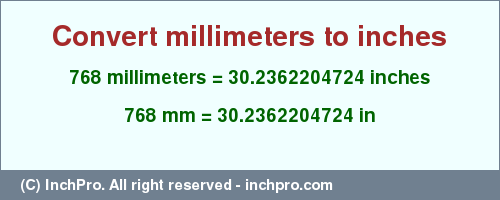 768 (mm) × 0.0393700787402 = 30.2362204724 (in)
